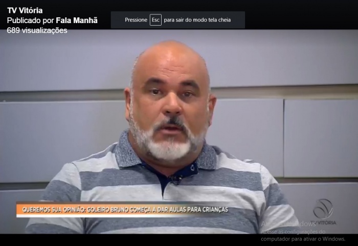PARTICIPAÇÃO NA ENTREVISTA SOBRE O TEMA: GOLEIRO BRUNO (PRESIDIÁRIO) DÁ AULAS DE FUTEBOL PARA 60 CRIANÇAS. TV VITÓRIA - REDE RECORD
