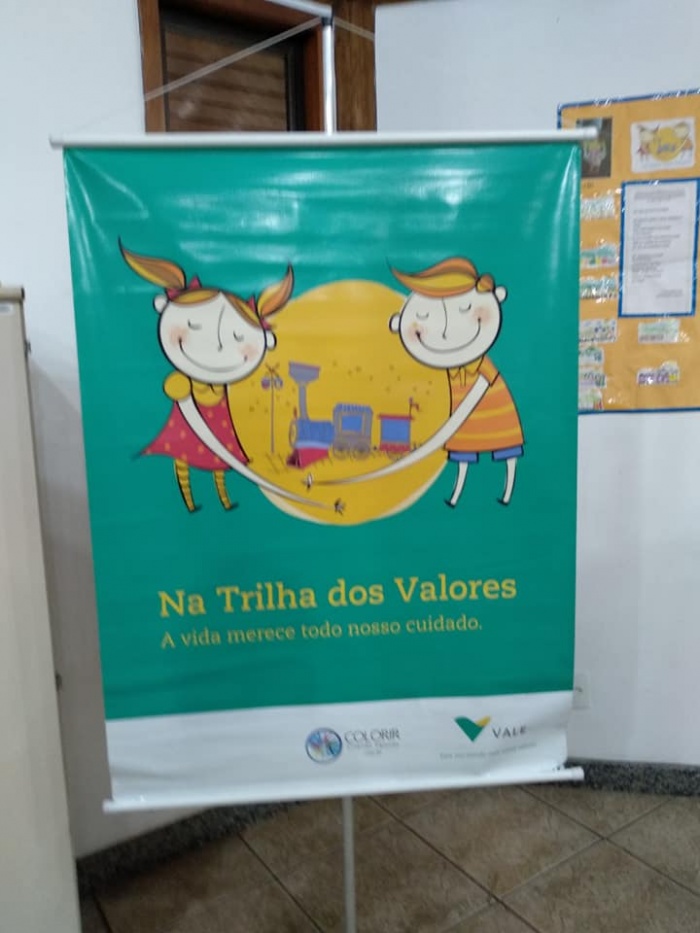 SEGURANÇA FERROVIÁRIA, CIDADANIA E MEIO AMBIENTE. PARCERIA: VALE X ESCOLAS INTEGRADAS E OSCIP COLORIR. Segurança ferroviária na sala de aula: Vale leva o tema para escolas de Serra e Cariacica. "Cada escola é contemplada pelo projeto por um período de três anos, obedecendo a três etapas distintas: aplicação, manutenção e autonomia. Na primeira, a equipe técnica do projeto apresenta conceitos sobre segurança ferroviária e realiza, junto com a escola, uma série de atividades envolvendo o tema. Já na fase de manutenção, essa mesma equipe estimula e apoia a escola a construir um projeto que contemple segurança ferroviária, cidadania e meio ambiente. A terceira etapa, por sua vez, é uma espécie de "adeus" por parte da empresa, onde a escola se torna protagonista das ações e passa a desenvolver o Na Trilha dos Valores sem o acompanhamento da equipe técnica".