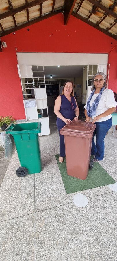 Hoje também foi dia de levarmos na escola os suportes para armazenamento do BIOFERTILIZANTE.