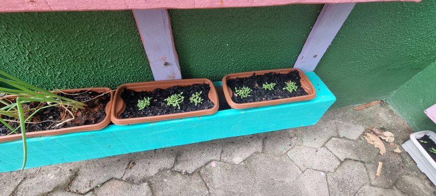 Já é perceptivel que as sementes estão brotando,,, E as crianças vibram percebendo o processo de desenvolvimento das plantinhas.