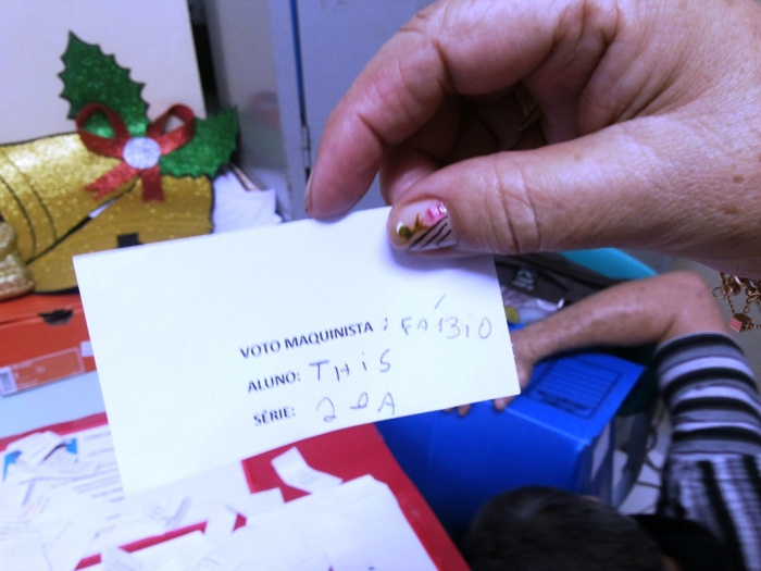 O NOME MAIS VOTADO FOI FÁBIO E A DIRETORA SORTEOU DENTRE OS ALUNOS DO MATUTINO E VESPERTINO QUE VOTARAM NO FÁBIO O NOME DA ALUNA: THAIS DA 2º A - MATUTINO - PARABÉNS!!! VAMOS VER OS RESULTADOS DAS OUTRAS ESCOLAS....E AGUARDAR O NOME OFICIAL DO NOSSO MAQUINISTA.