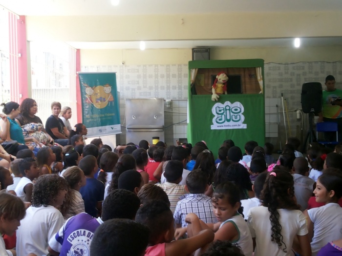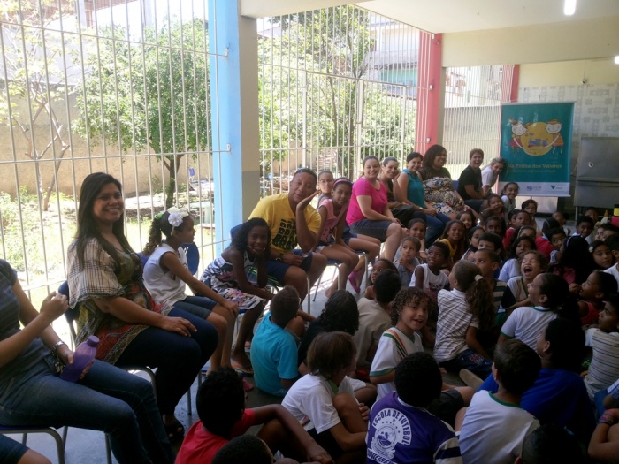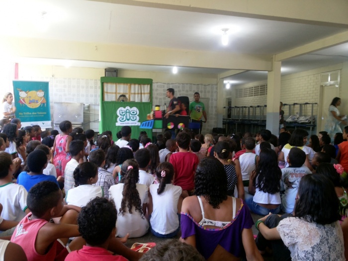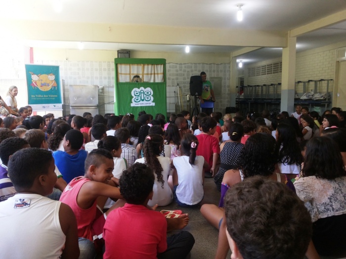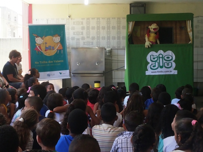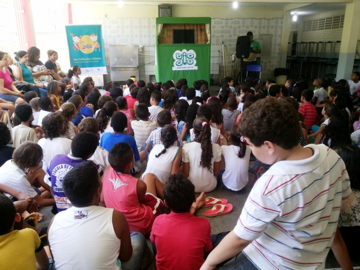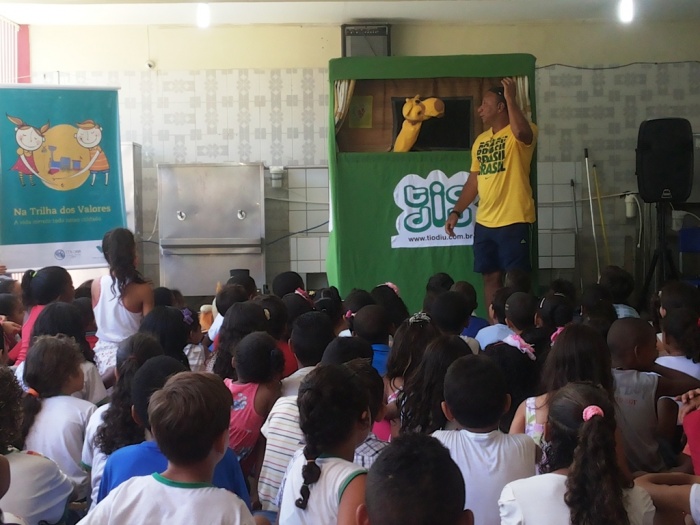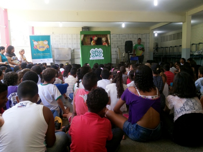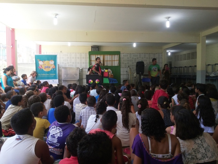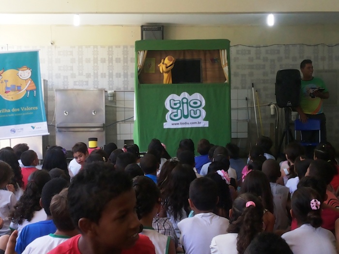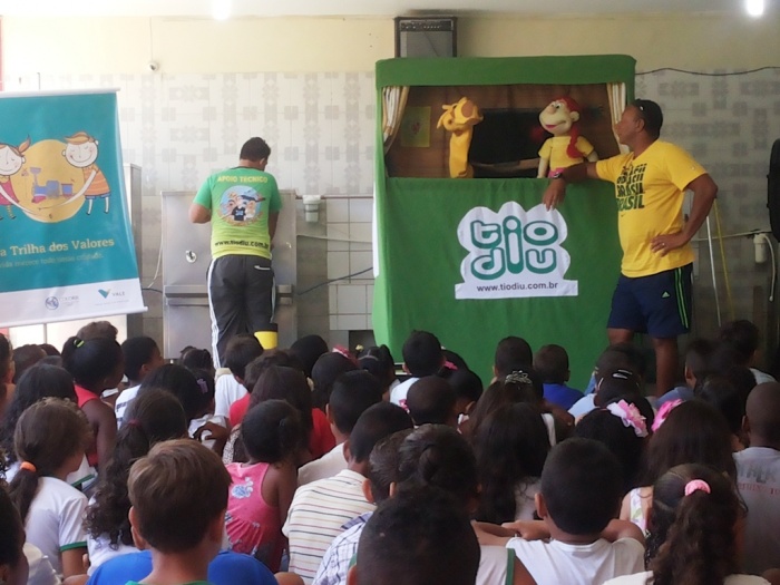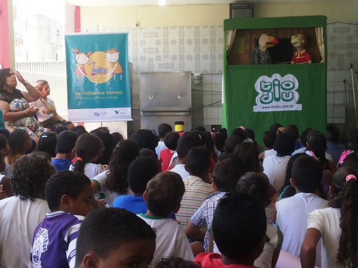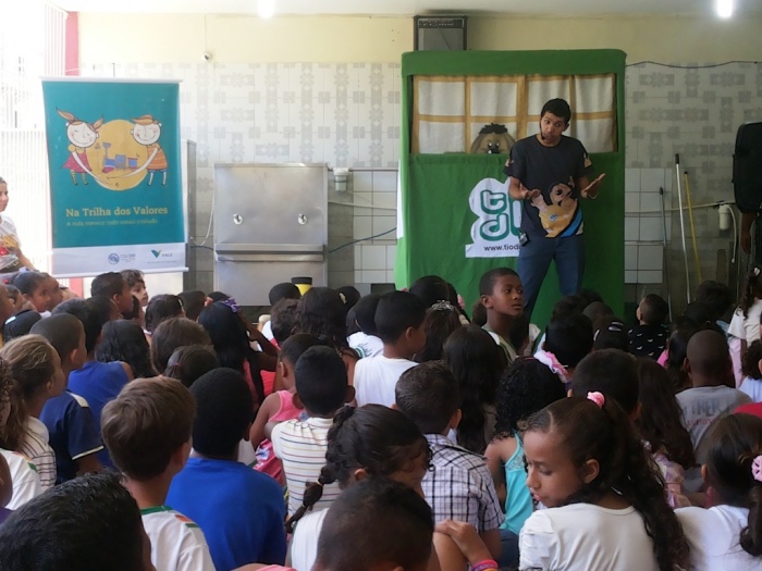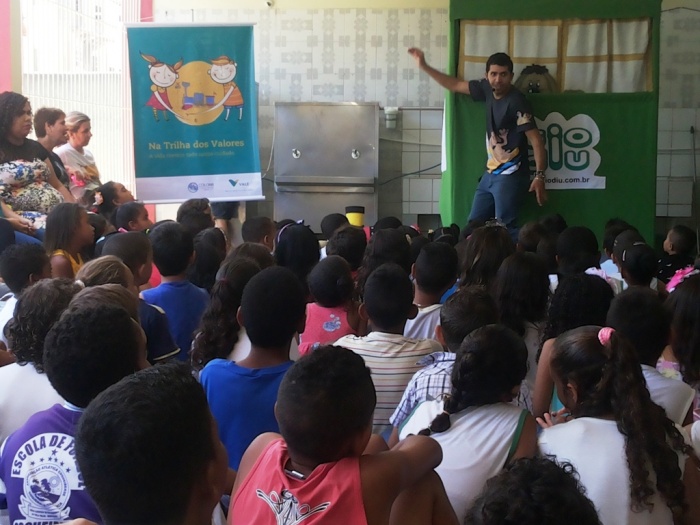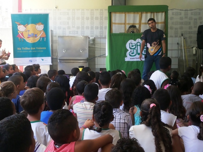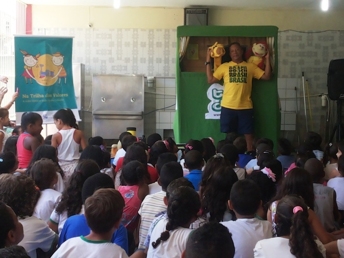 BUBÚ E ALVINHO E A TRUPE DO PROJETO NA TRILHA DOS VALORES.