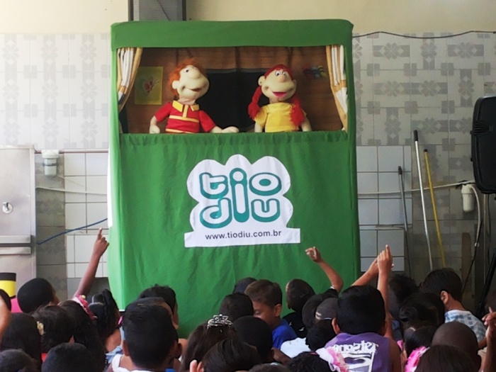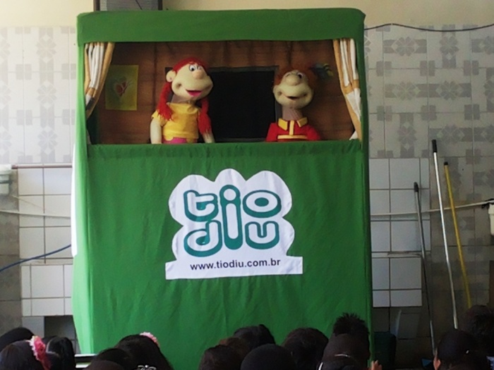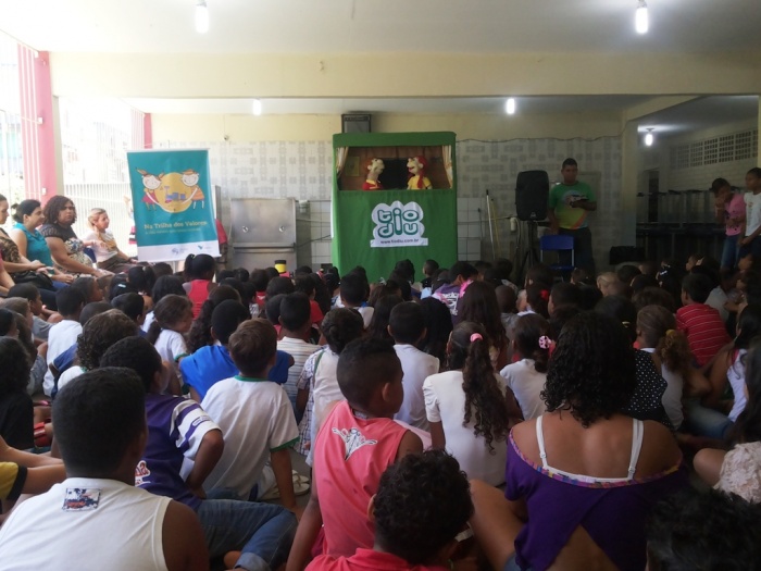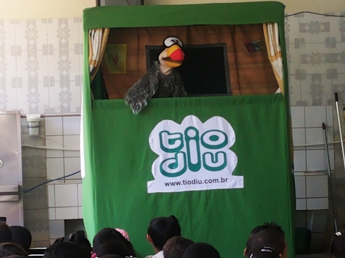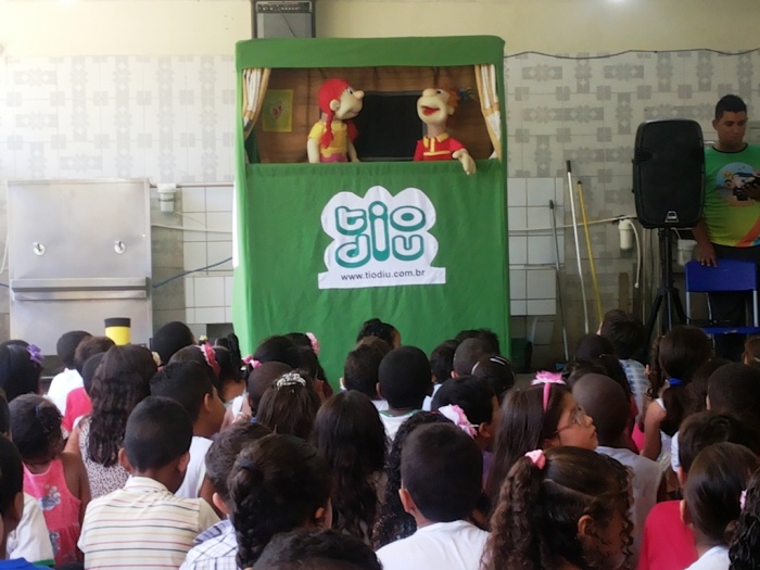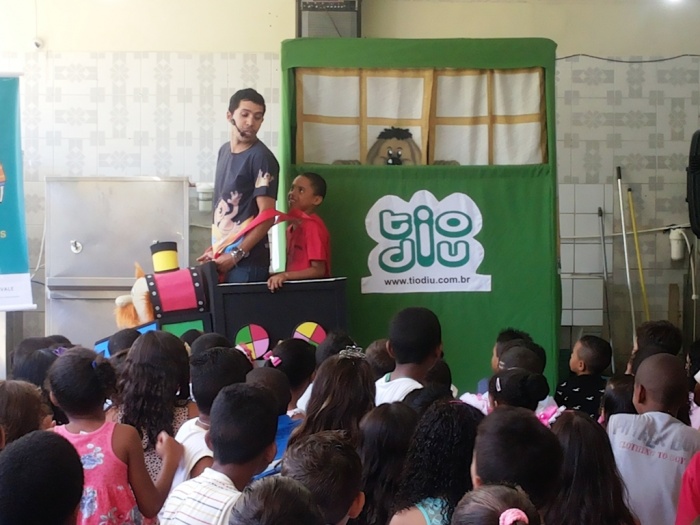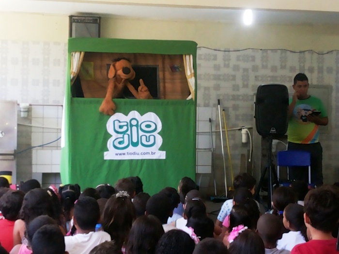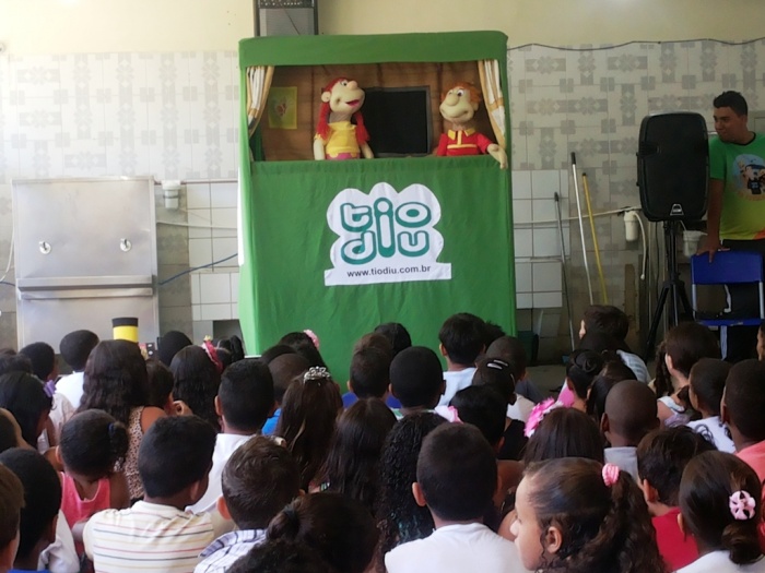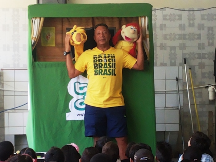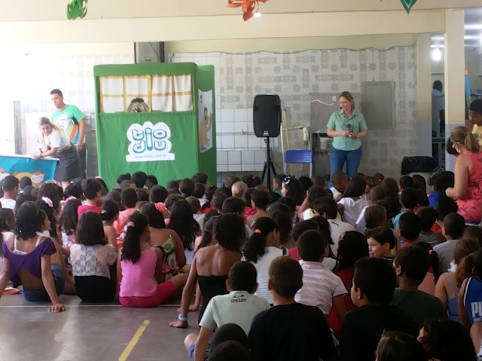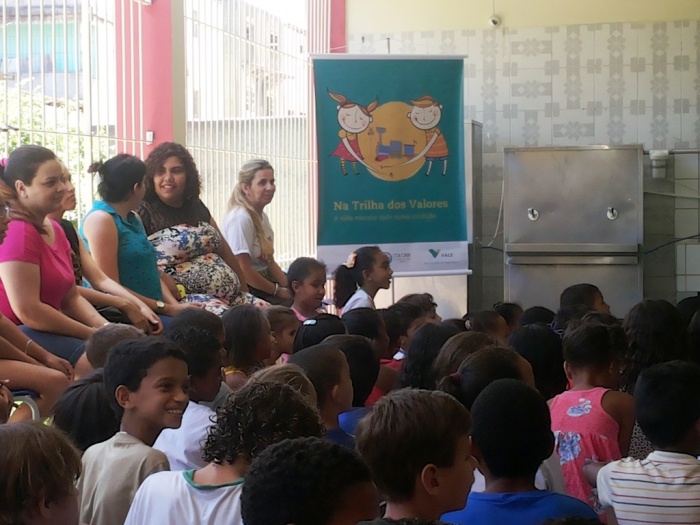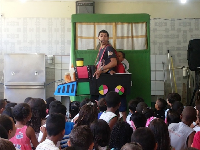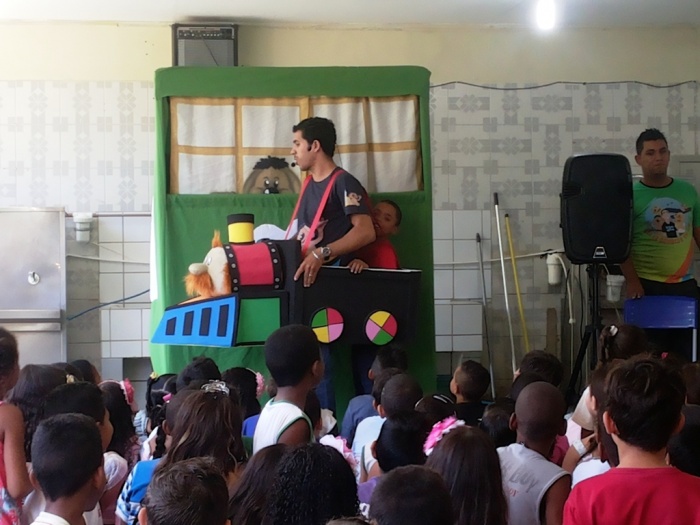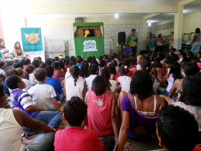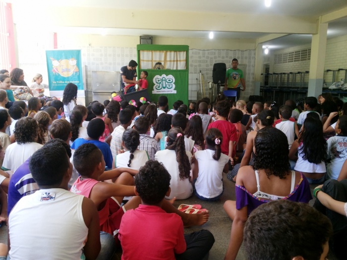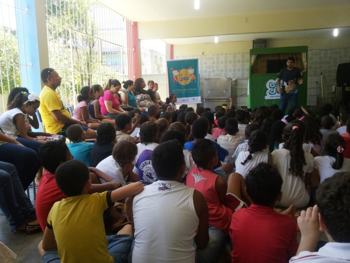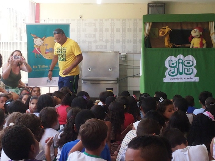 BUBÚ E ALVINHO E A TRUPE DO PROJETO NA TRILHA DOS VALORES.