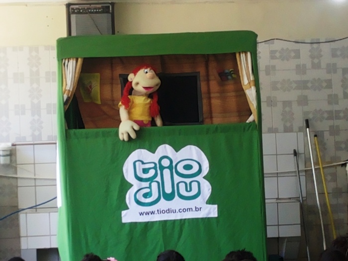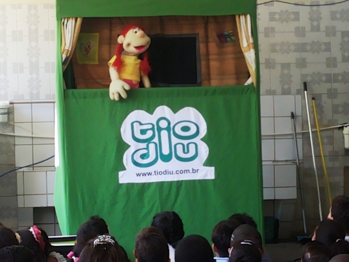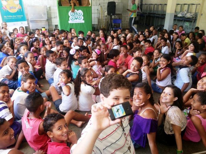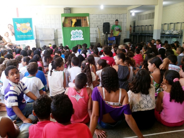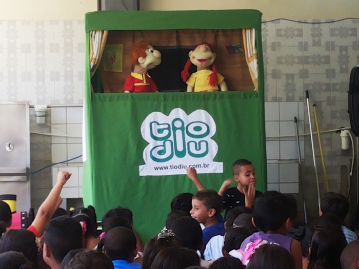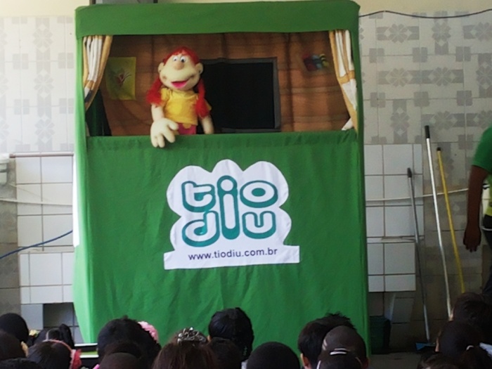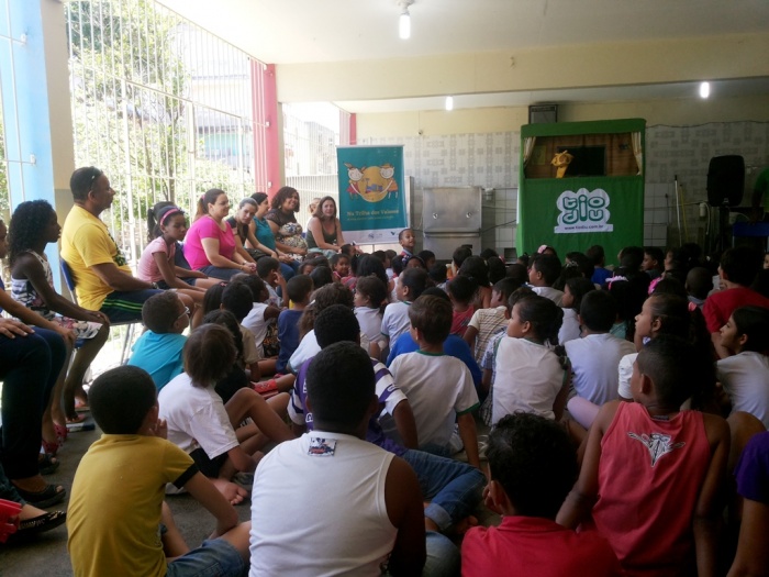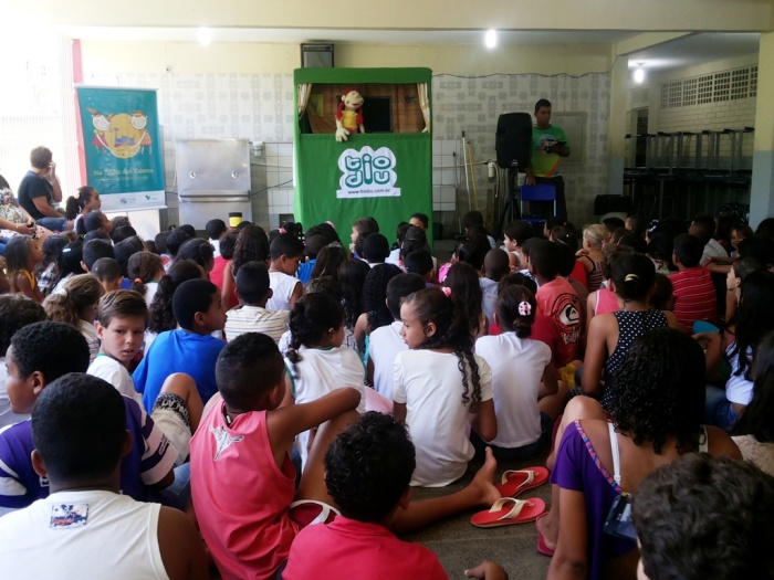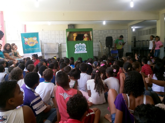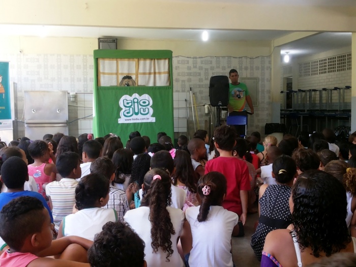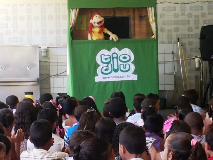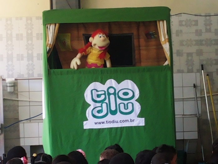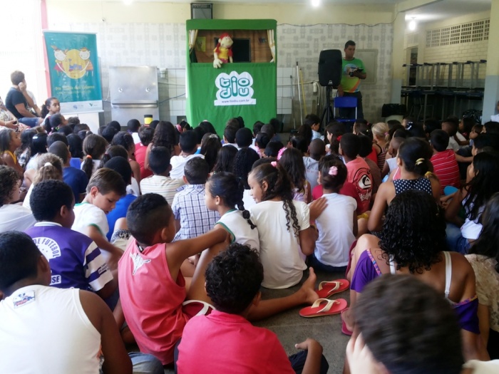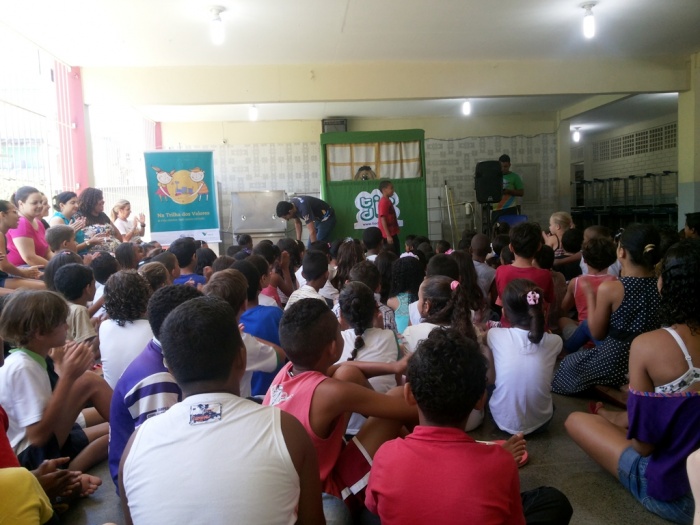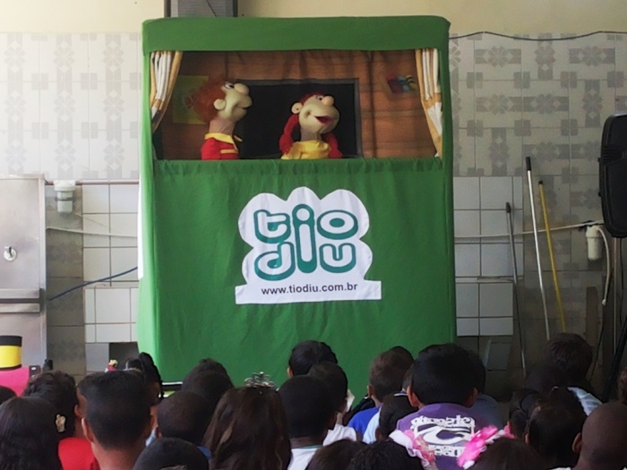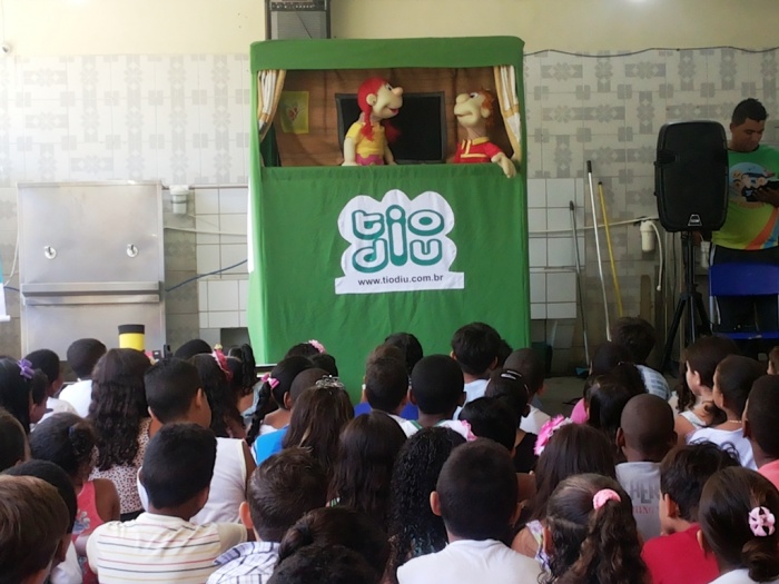 BUBÚ E ALVINHO E A TRUPE DO PROJETO NA TRILHA DOS VALORES.