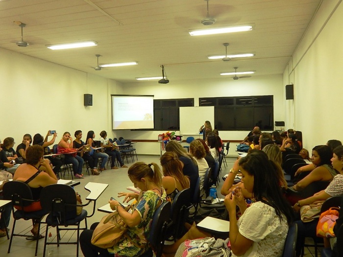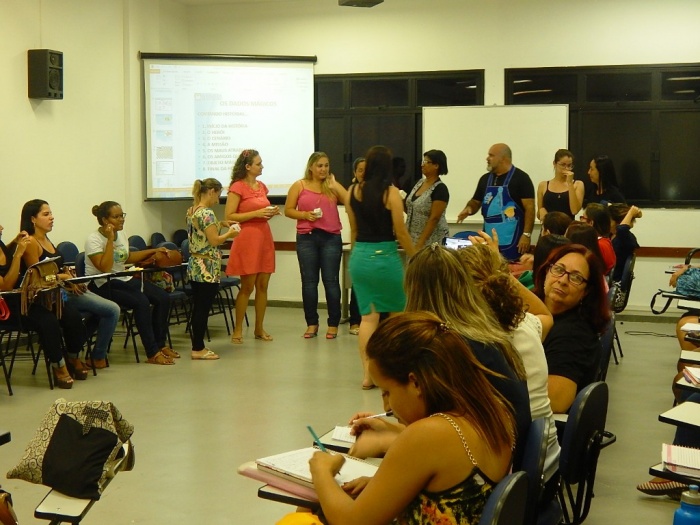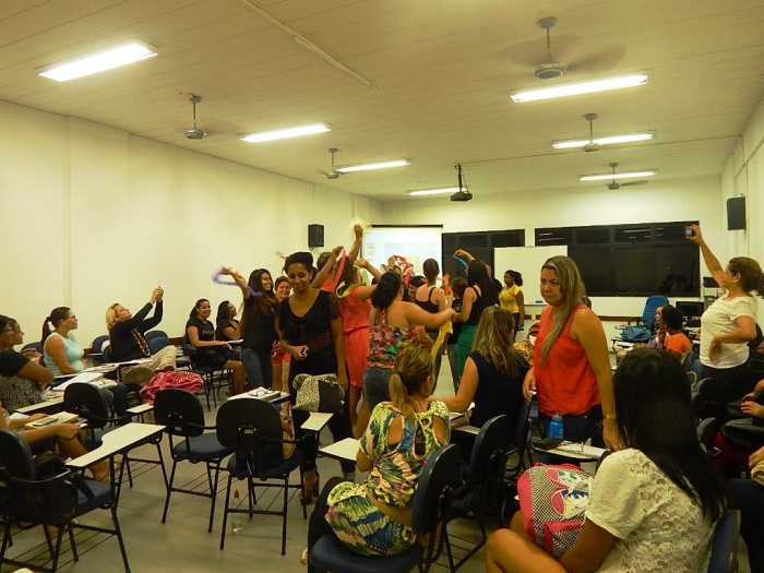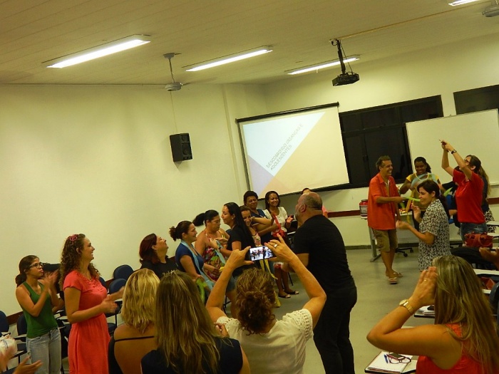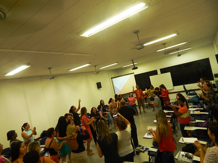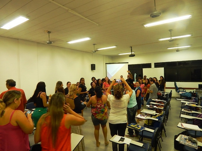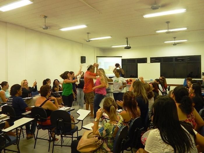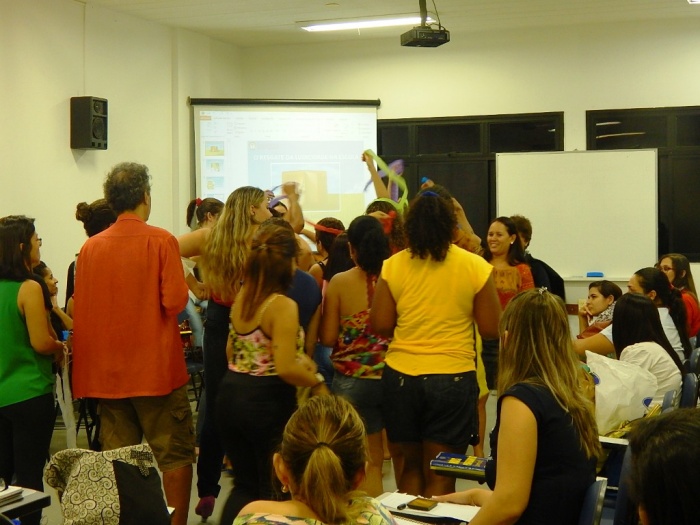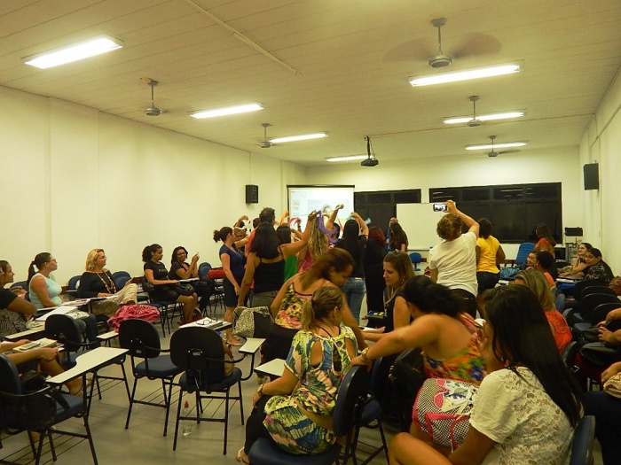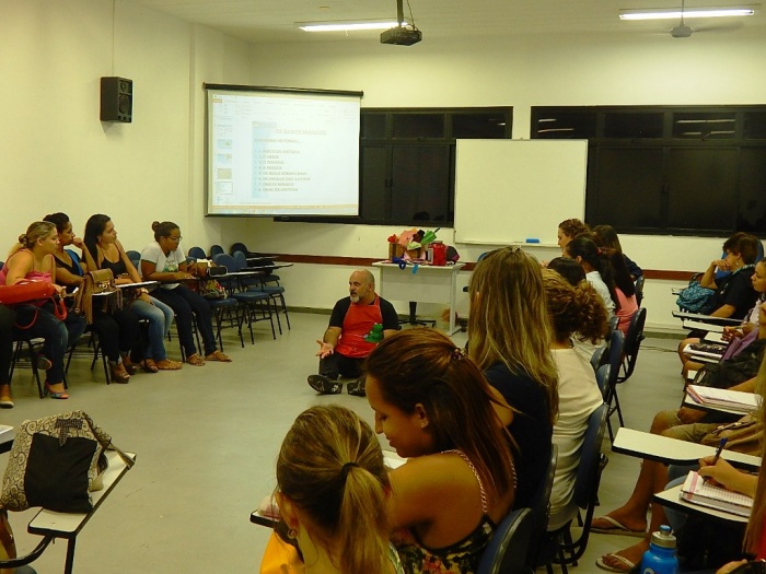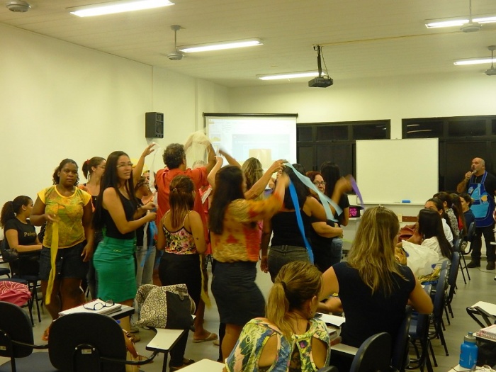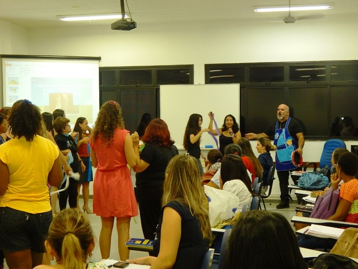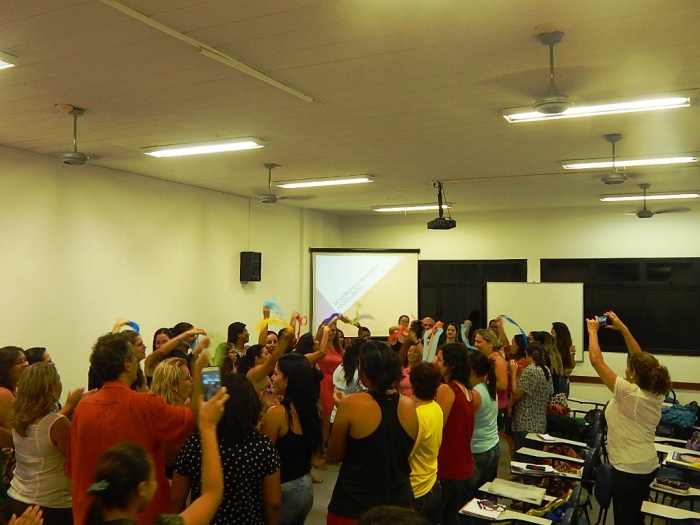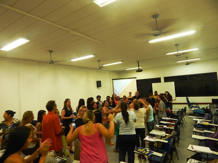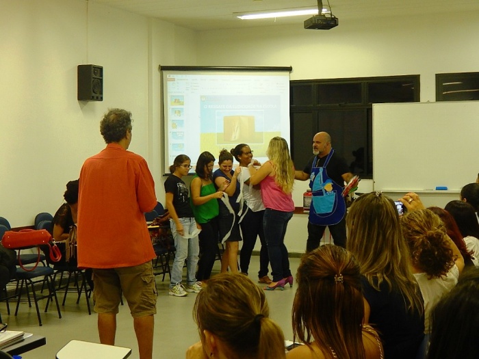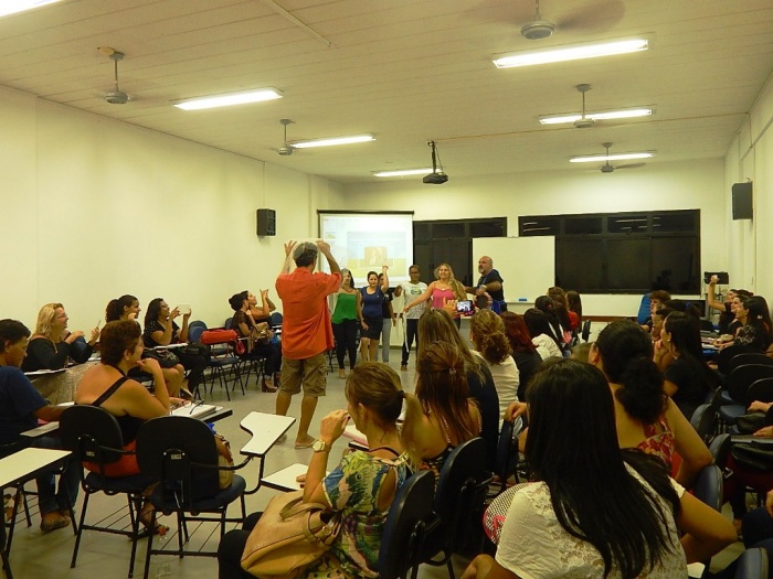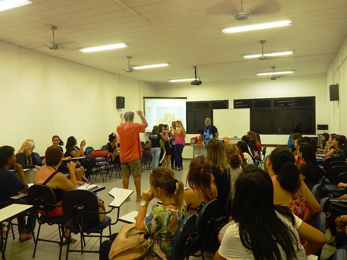 Alunos do 2º e 3º período em formação com a equipe do COLORIR