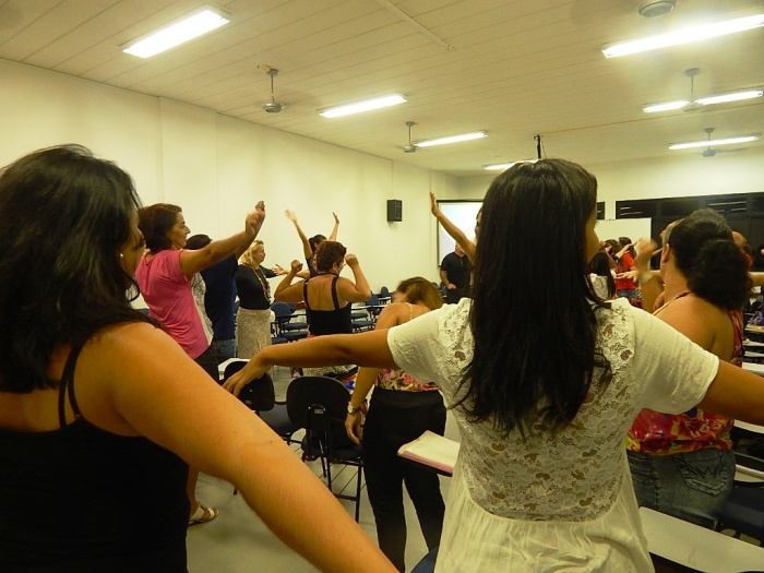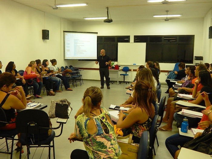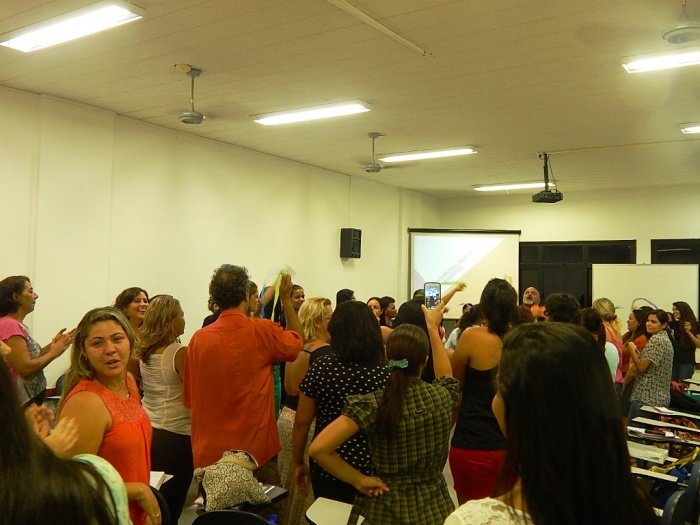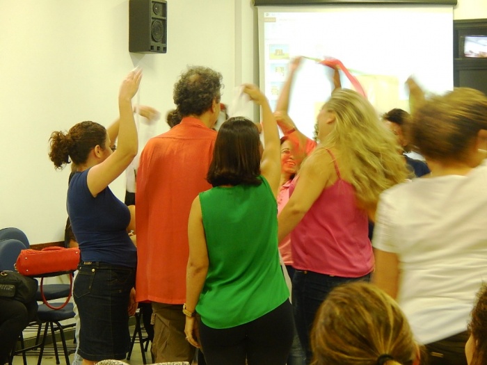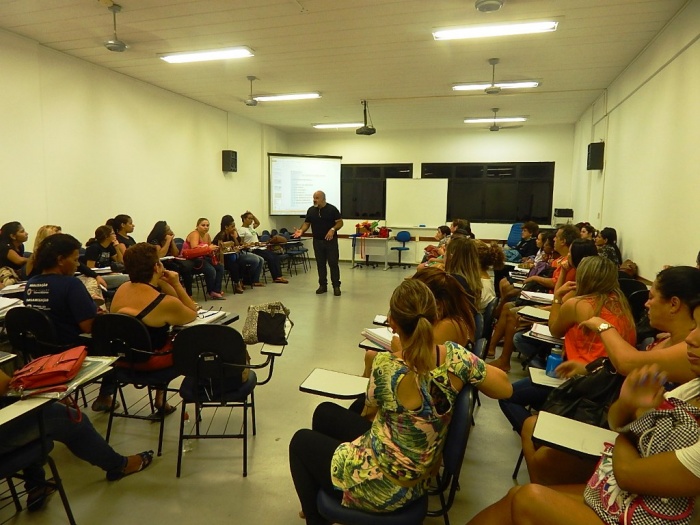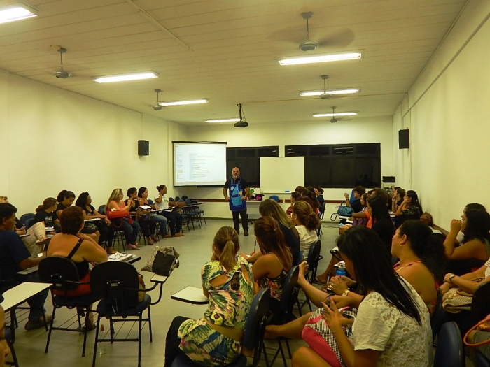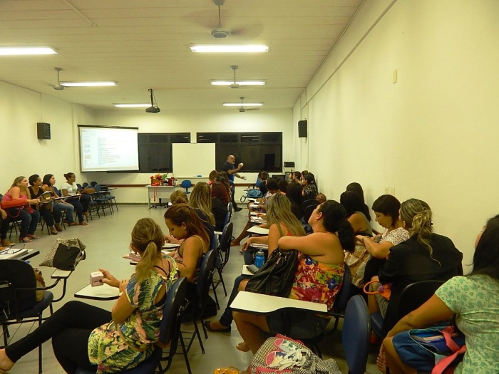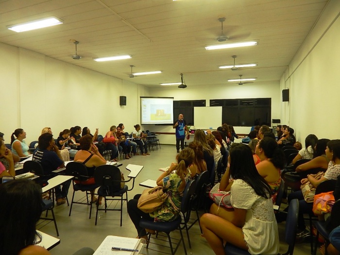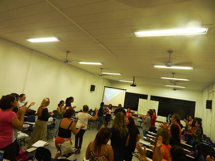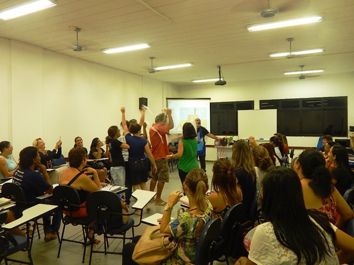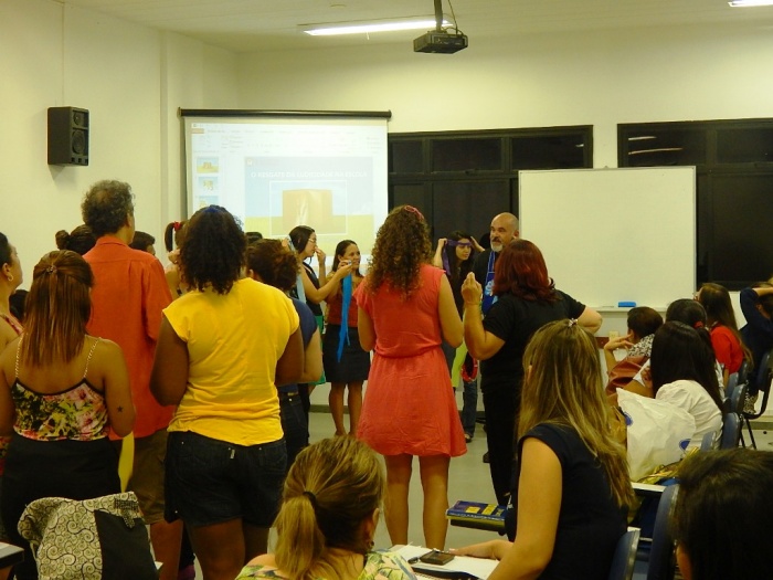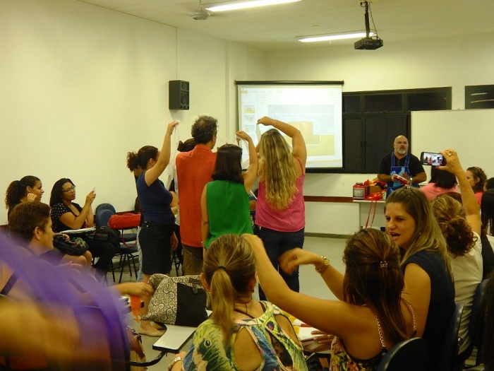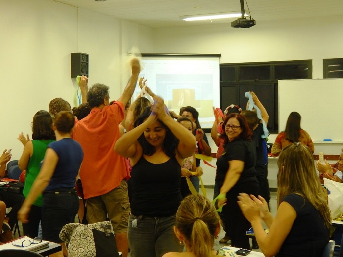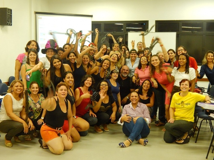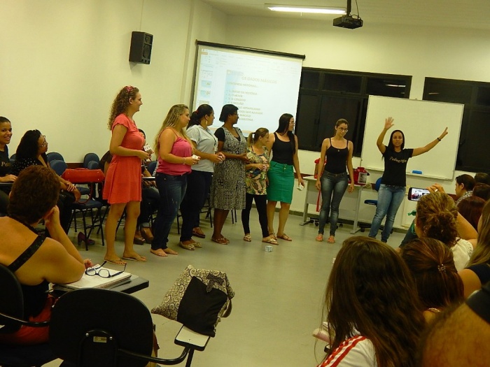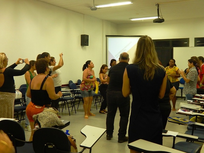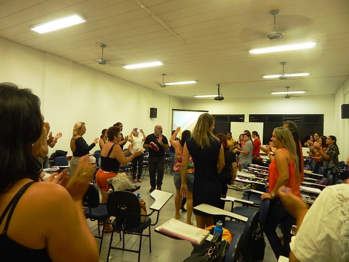 Alunos do 2º e 3º período em formação com a equipe do COLORIR