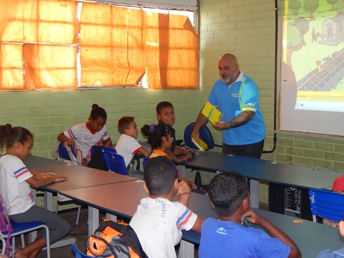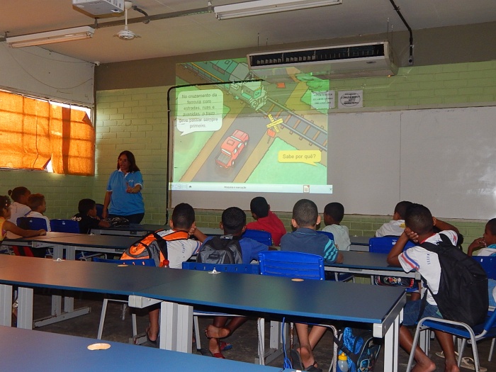 AULA COM PALESTRA INTERATIVA DE SEGURANÇA FERROVIÁRIA: FILME, JOGO, CONTAÇÃO DE HISTÓRIA E MUITA ANIMAÇÃO!